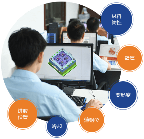 分析通過對材料物性,產(chǎn)品的可行性分析,如壁厚、變形度、進膠位置等,提前預判斷潛在問題